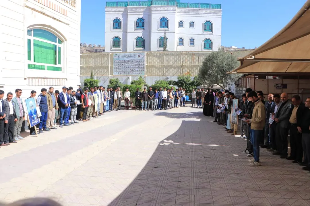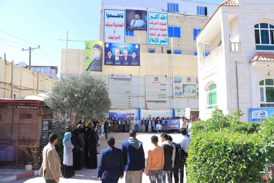 ورفع المشاركون في الوقفة التي شارك فيها نائب رئيس الجامعة الدكتور أحمد البعداني، والأمين العام الدكتور فؤاد إسماعيل حنش، وعدد من عمداء الكليات ورؤساء الأقسام، ومنتسبي الجامعة من أكاديميين وإداريين وطلبة، الشعارات والهتافات المنددة بجرائم الكيان الصهيوني الذي ارتكبت أبشع مجازر الإبادة الجماعية بحق الشعب الفلسطيني على مدى 471 يوماً بشكل لامثيل له في هذا العصر.